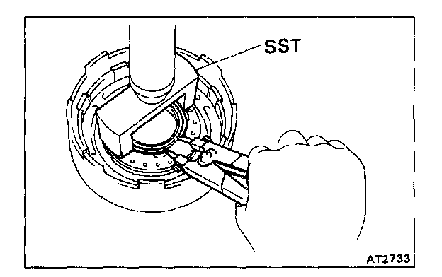 c. Install the snap ring with the snap ring pliers. Be sure the end gap of snap ring is not aligned with the spring retainer claw.