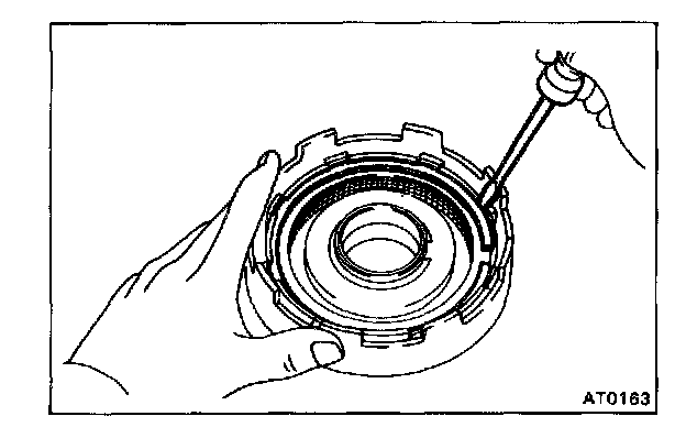 a. Install new O-rings to the piston. Coat the O-rings with ATF.