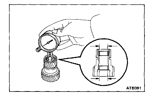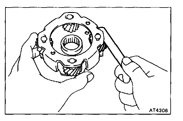 Using a feeler gauge, measure the planetary pinion gear thrust clearance.