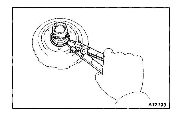 Using snap ring pliers, remove the shaft snap ring from the sun gear.