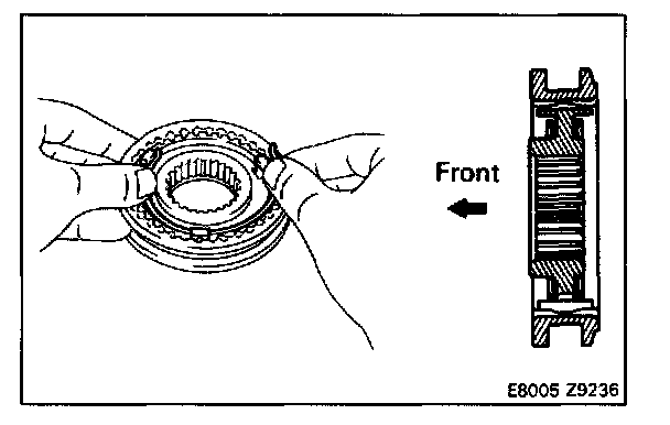 c. Place the synchronizer ring on the gear and align the ring slots with the shifting keys.