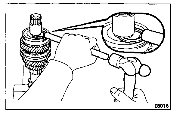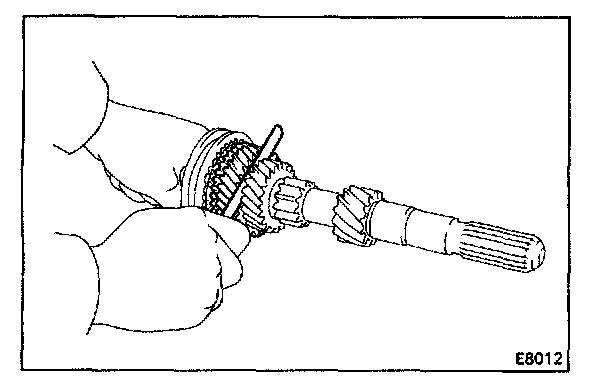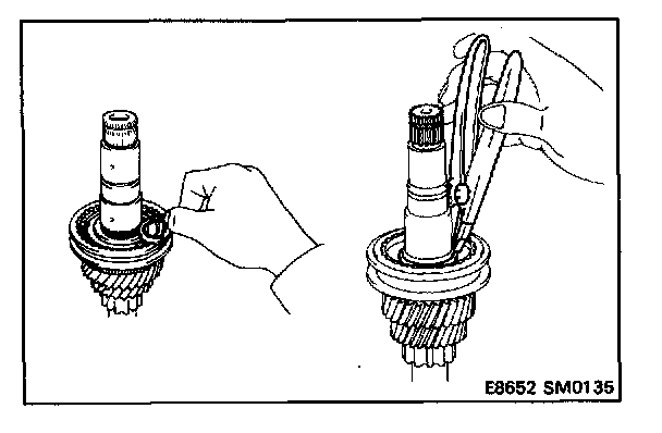 6. INSTALL SPACER, SYNCHRONIZER RING, NEEDLE ROLLER BEARINGS, FOURTH GEAR AND RADIAL BALL BEARING