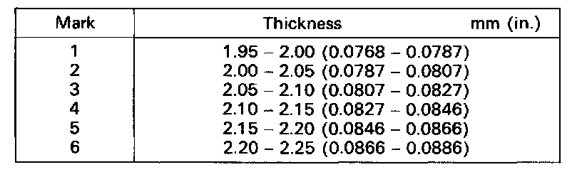 Standard clearance: 0.20 - 0.45 mm (0.0079 - 0.0177 in.)