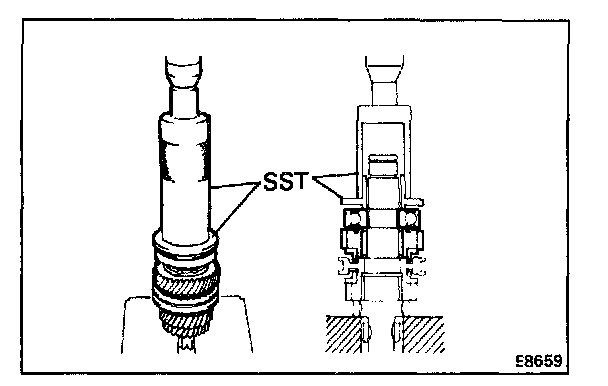 e. Using SST and a press, install the radial ball bearing.