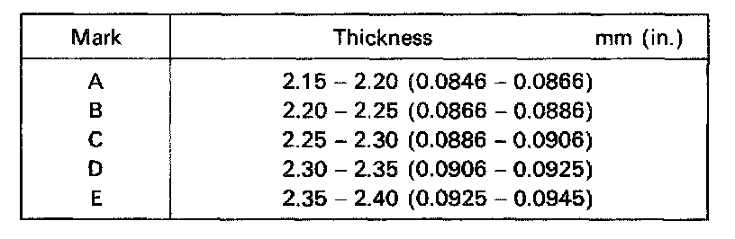 Standard clearance: 0.10 - 0.25 mm (0.0039-0.0098 in.)