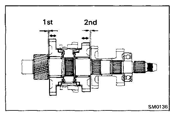 1st and 2nd gear 0.009 - 0.053 mm (0.0004 - 0.0020 in.)