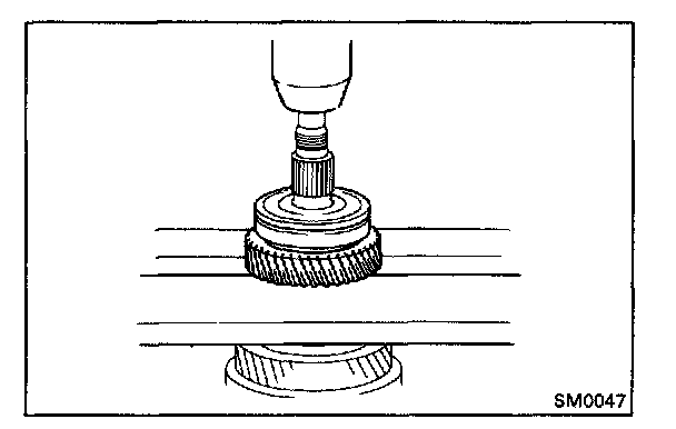 b. Using a press, remove the 3rd driven gear and 2nd gear.