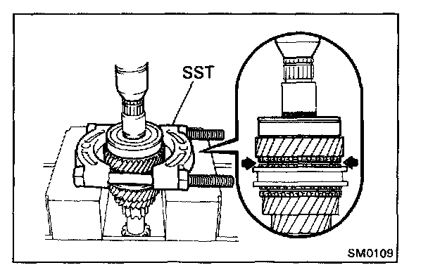 5. REMOVE NEEDLE ROLLER BEARINGS, SPACER AND SYNCHRONIZER RING