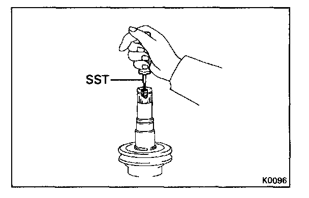 Using SST and a press, remove the radial ball bearing.