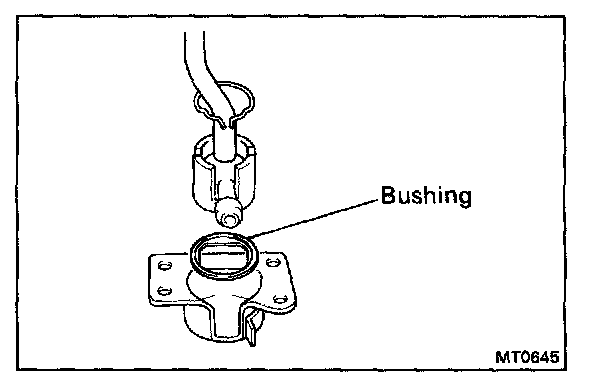 Check that there is no vertical play in the shift lever. If there is any play, replace bushing.