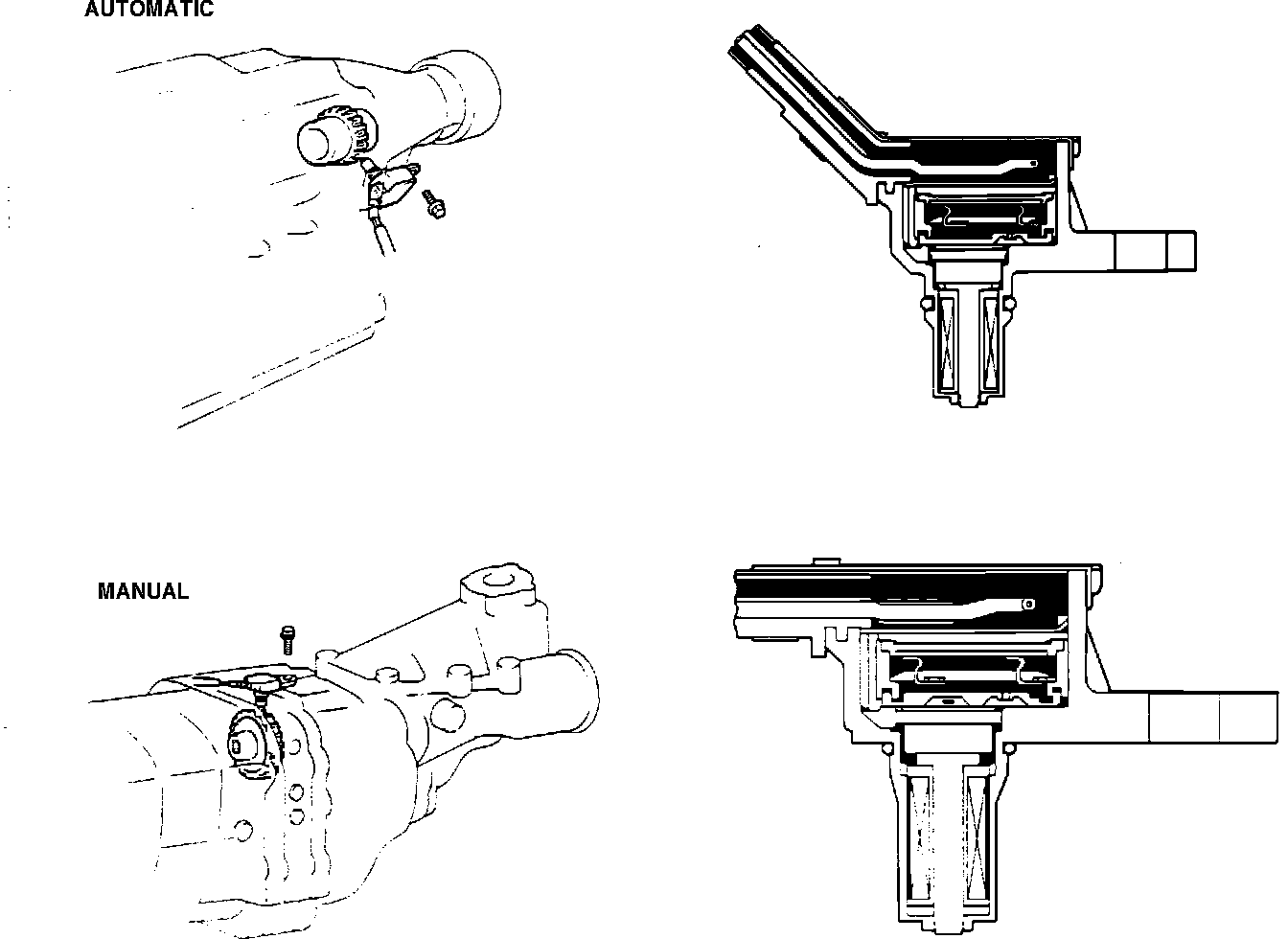 Rear wheel speed sensor located in the transmission tailshaft housing.