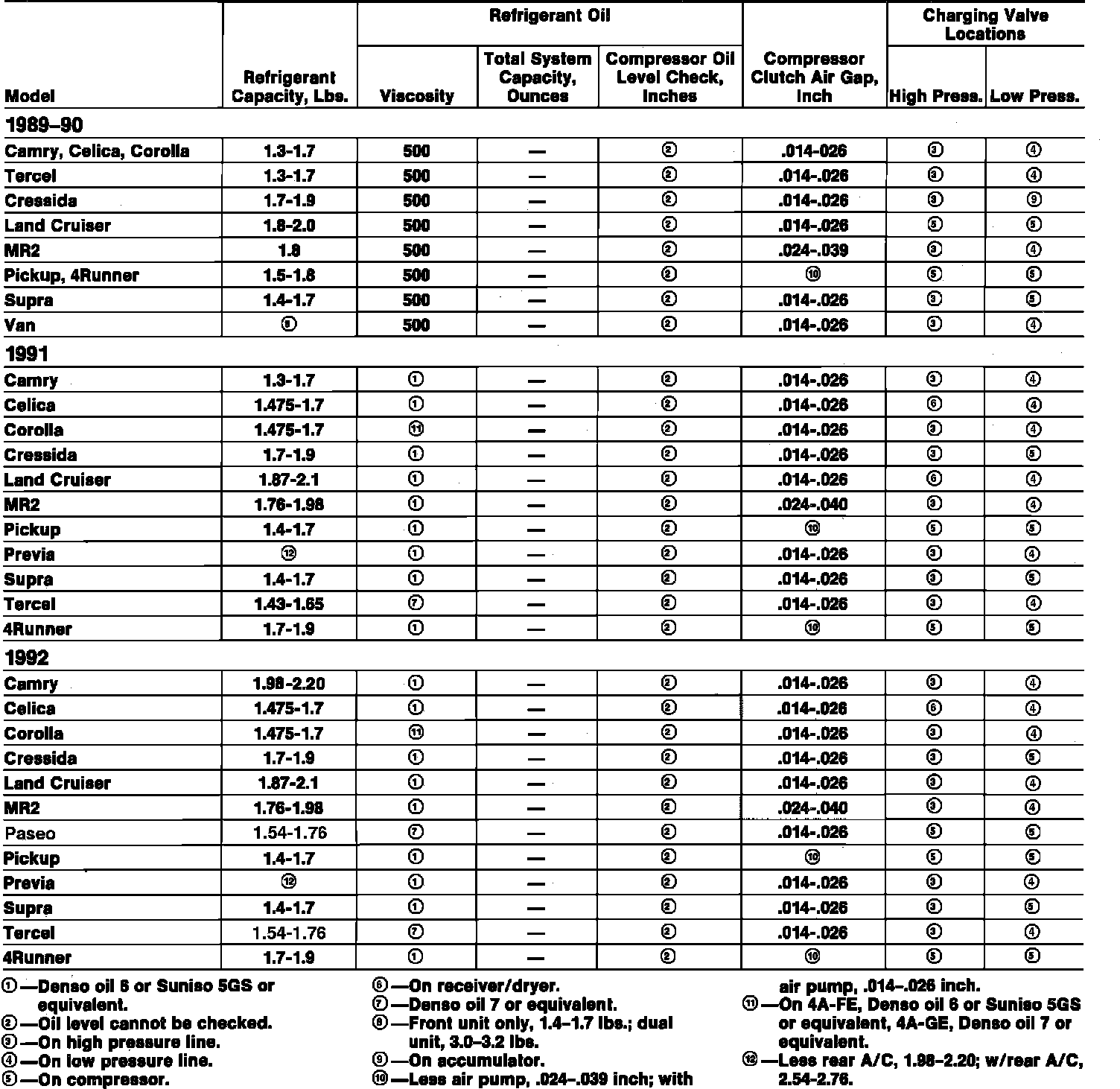 A/C Data Table: