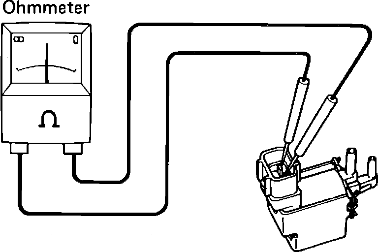 7. Using an ohmmeter, check the resistance between the terminals and the VSV housing. Fig. 18