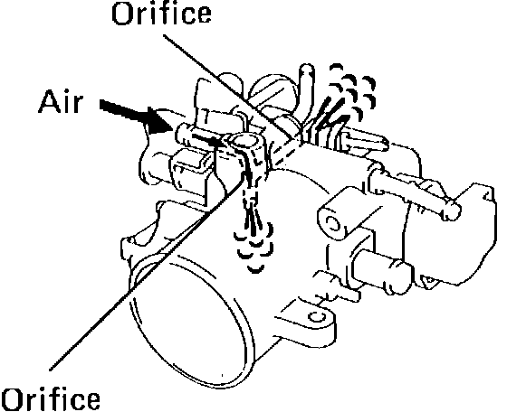 Check inlet orifices on throttle valve housing, Fig. 9. Clean with solvent and blow out with compressed air.
