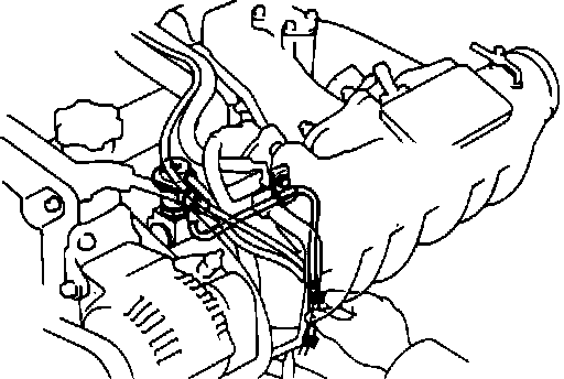 3. Remove fuel delivery tube between Cold Start Injector and fuel rail. Use caution if the fuel system is still under pressure.
