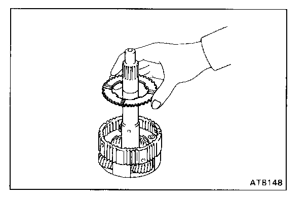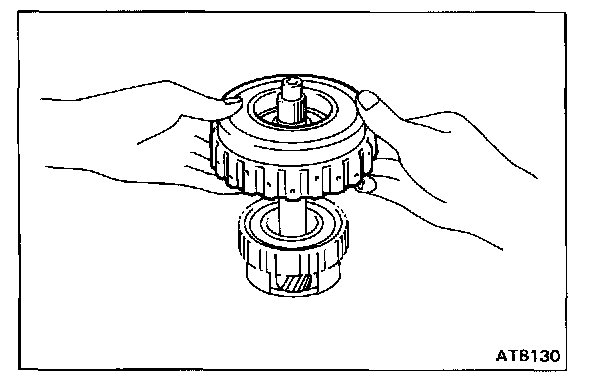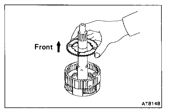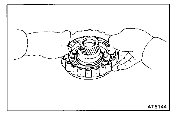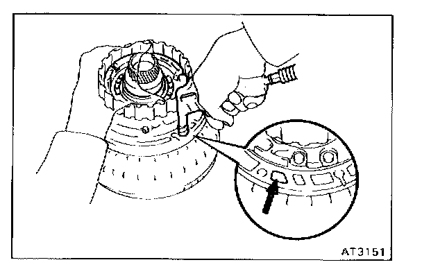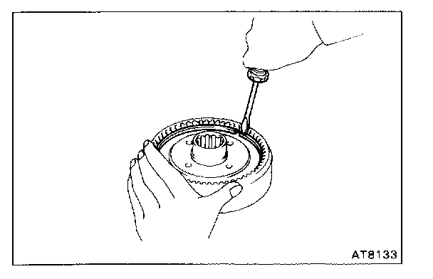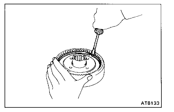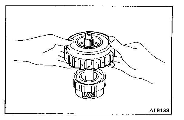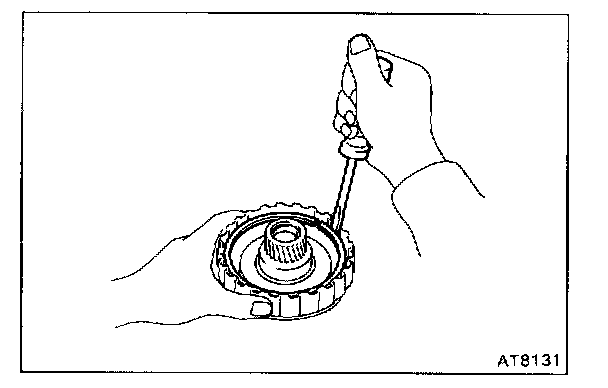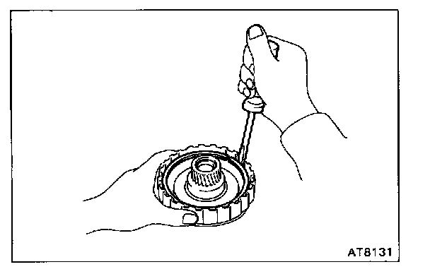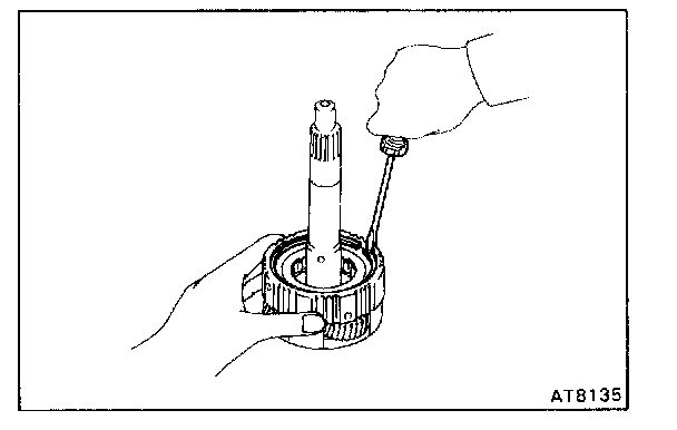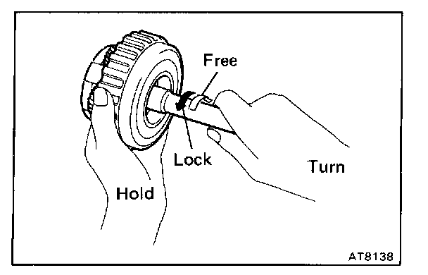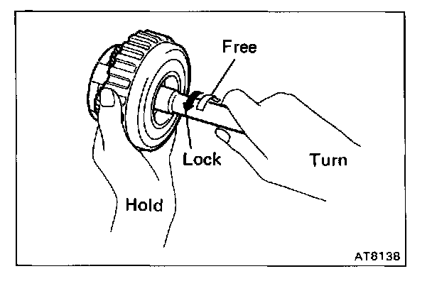 Hold the O/D direct clutch drum and turn the input shaft. The input shaft turns freely clockwise and locks counterclockwise.