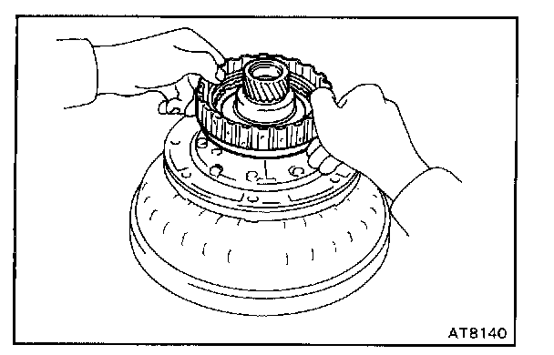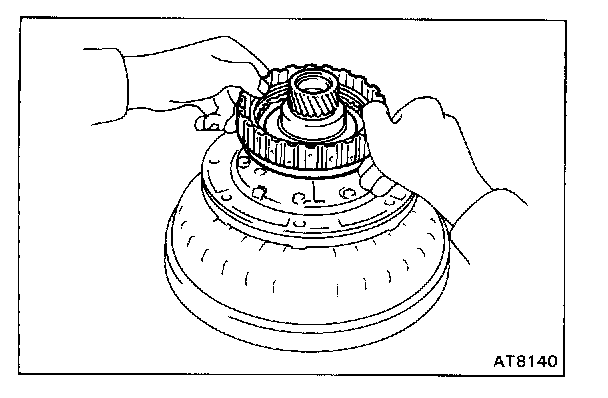 a. Place the oil pump onto the torque converter and then place the O/D direct clutch onto the oil pump.