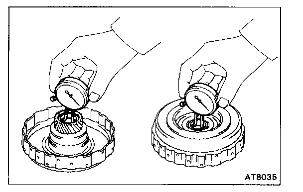 Using a dial indicator, measure the inside diameter of the clutch drum bushings.