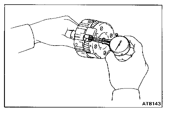 Using a feeler gauge, measure the planetary pinion gear thrust clearance.