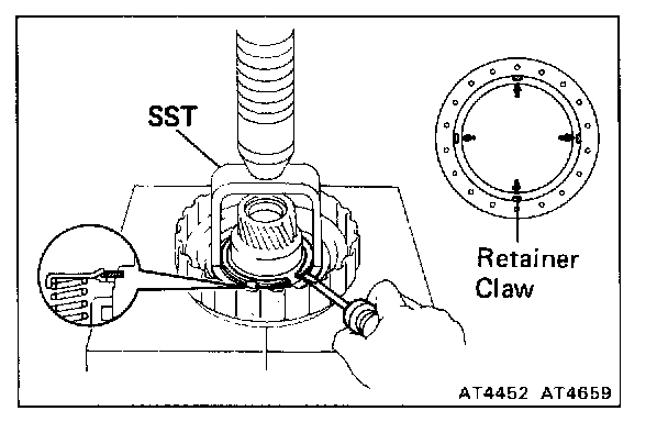 c. Install the snap ring with a screwdriver. Be sure the end gap of the snap ring is not aligned with the spring retainer claw.