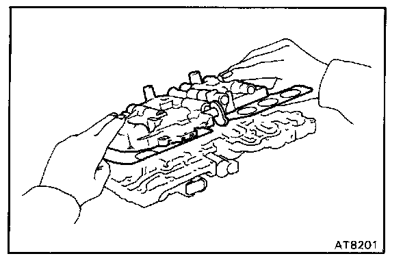 4. PLACE UPPER VALVE BODY WITH PLATE AND GASKETS ON TOP OF LOWER VALVE BODY