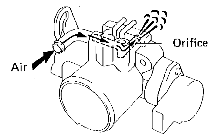 Check inlet orifice on throttle valve housing, Fig. 10. Clean with solvent and blow out with compressed air.