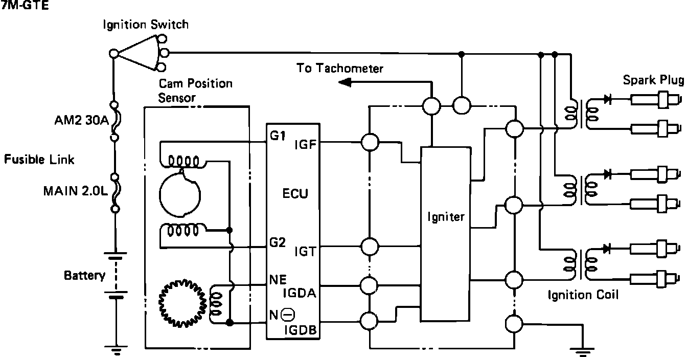The igniter is essentially an electronic relay. It receives a "trigger" from the ECM and responds by turning a higher amperage current to the ignition coil on and off. Each time a spark is produced an ignition confirmation (IGF) signal is sent to the ECM.