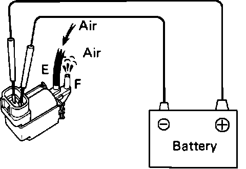 6. Apply battery current to the VSV and check that air flows through pipe E and F.