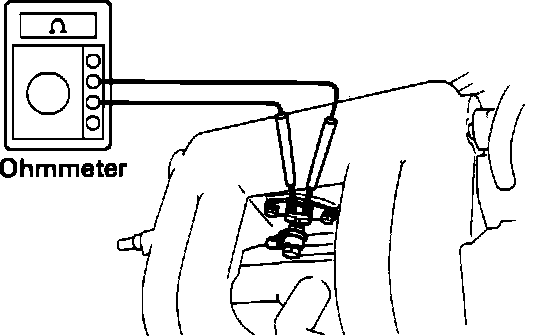 1. Disconnect the Cold Start Injector connector.2. Using an Ohmmeter, measure the resistance across the terminals.