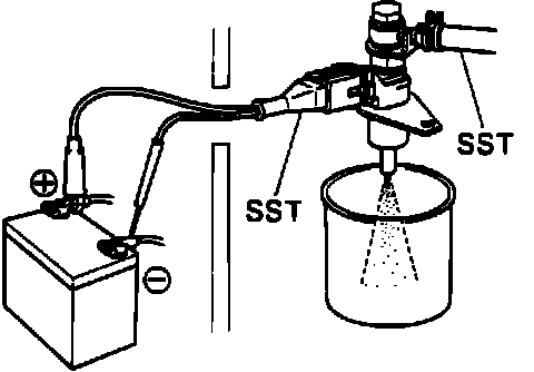 9. Connect the test probes to the battery and check the fuel spray pattern of the Cold Start Injector.