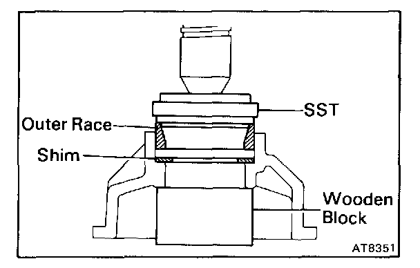 Using SST, press Out the outer race and shim.