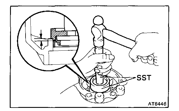 a. Using SST, drive in a new oil seal until its surface is flush with the surface of the case.