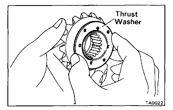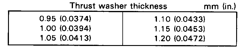 Refering to the table, select thrust washers which will ensure that the backlash is within specification. Try to select washers of the same size for both sides.