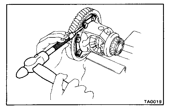 a. Drive out the pinion shaft lock pin from the side on which the ring gear is installed