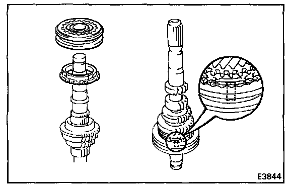 2. INSTALL THIRD GEAR, NEEDLE ROLLER BEARINGS, SYNCHRONIZER RING AND NO.2 HUB SLEEVE ASSEMBLY TO INPUT SHAFT
