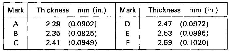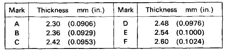Standard clearance: 0.10 - 0.35 mm (0.0039 - 0.0138 in.)