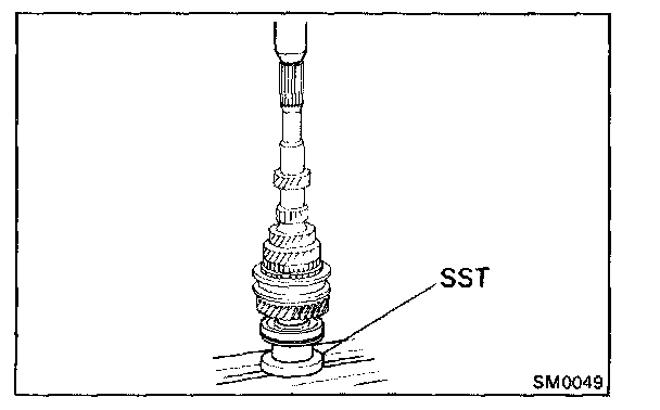 5. INSTALL SYNCHRONIZER RING, NEEDLE ROLLER BEARINGS, SPACER, FOURTH GEAR AND REAR BALL BEARING