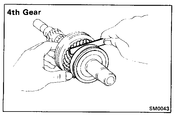 b. Remove the 4th gear, needle roller bearings, spacer and synchronizer ring.