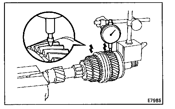 Using dial indicator, measure the oil clearance between the gear and shaft.