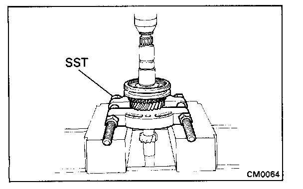 Using SST and a press, remove No.2 hub sleeve, 3rd gear, synchronizer ring and needle roller bearings.