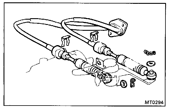 b. Connect the cables to the linkage with the washers and clips.