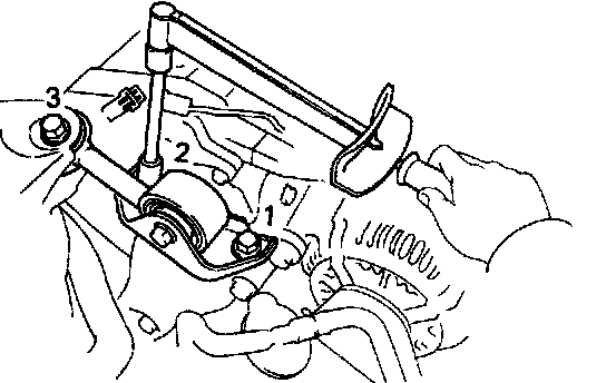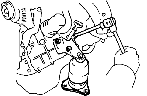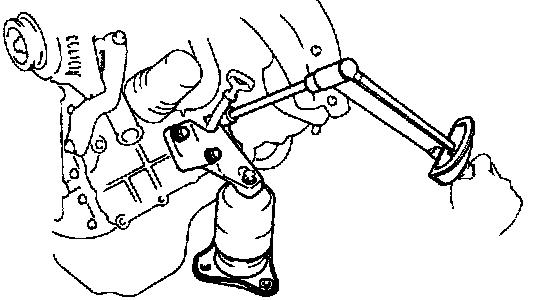 - Remove the three bolts and engine mounting bracket.