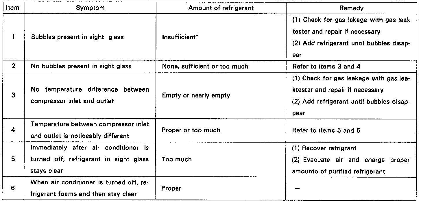 3. Inspect amount of refrigerant. Observe the sight glass on the liquid tube.
