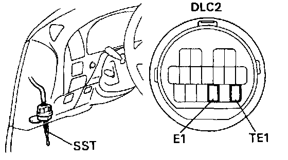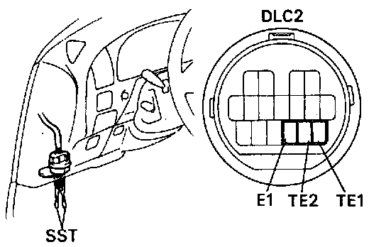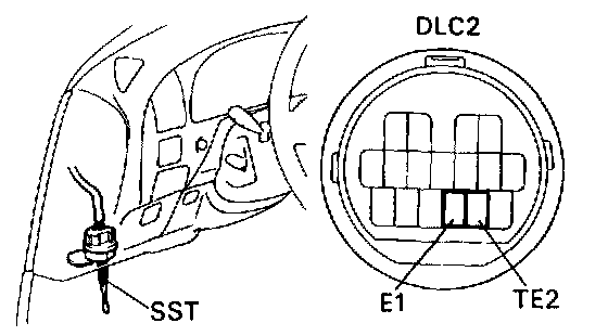 2. First, using SST 09843-18020. connect terminals TE2 and E1 of the DLC2, then the ignition switch on to begin the diagnosis in the test mode.
