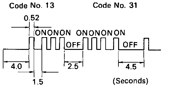 ^ After all the codes have been output, there will be a 4.5 second pause and they will all be repeated as long the terminals TE1 and E1 of the TDCL or data link connector 1 are connected.