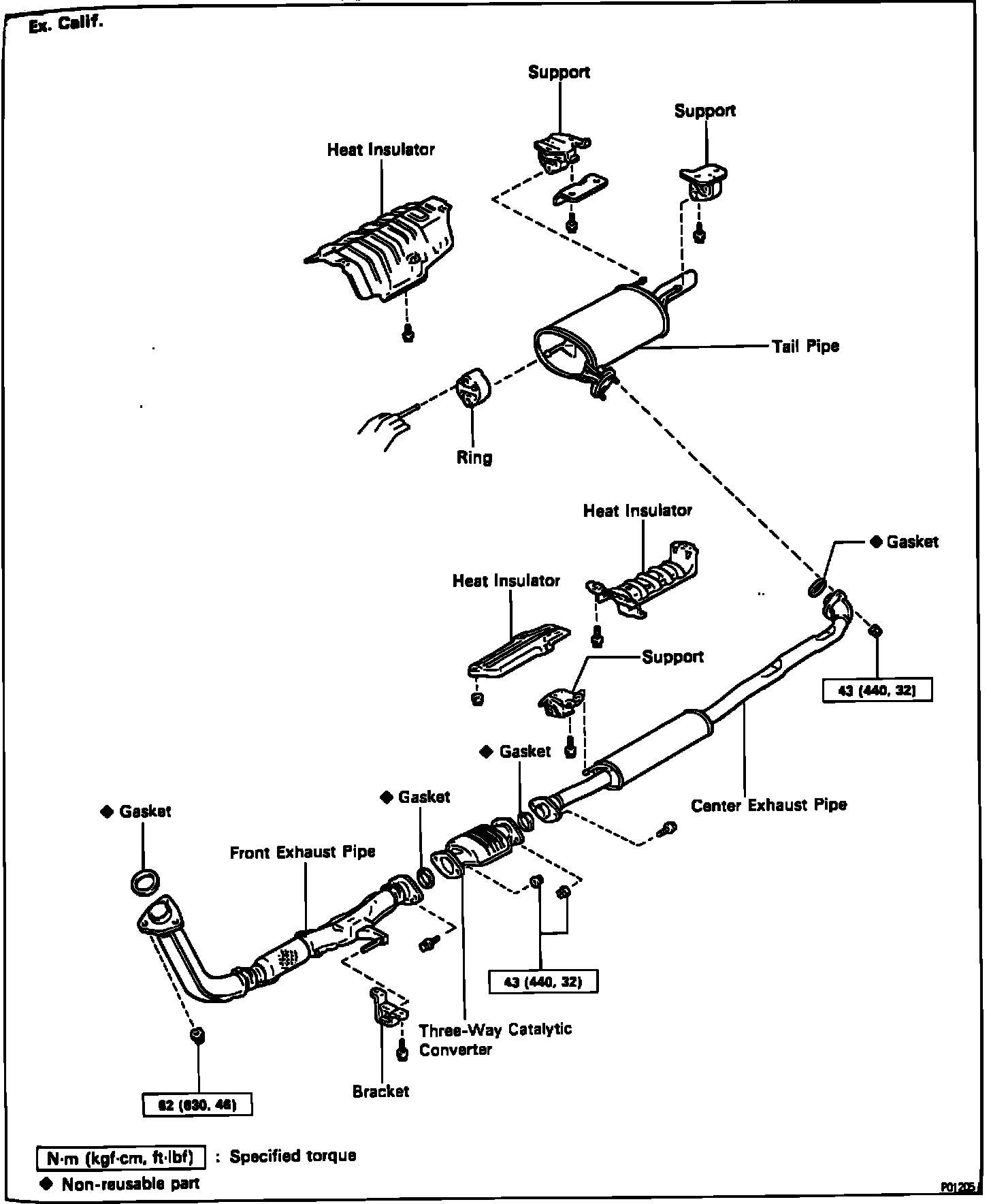If exhaust system back-pressure and/or exhaust emission levels are excessive, remove the catalytic converter from the car and make a visual check for plugged, melted or cracked ceramic grid inside. If any of the visible areas are damaged, replace the catalytic converter.