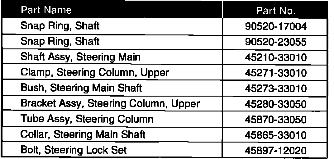 To provide a more precise fit for the '92 & '93 Camry steering column, we have introduced new supply parts (listed), and changed the disassembly and assembly procedure as shown.