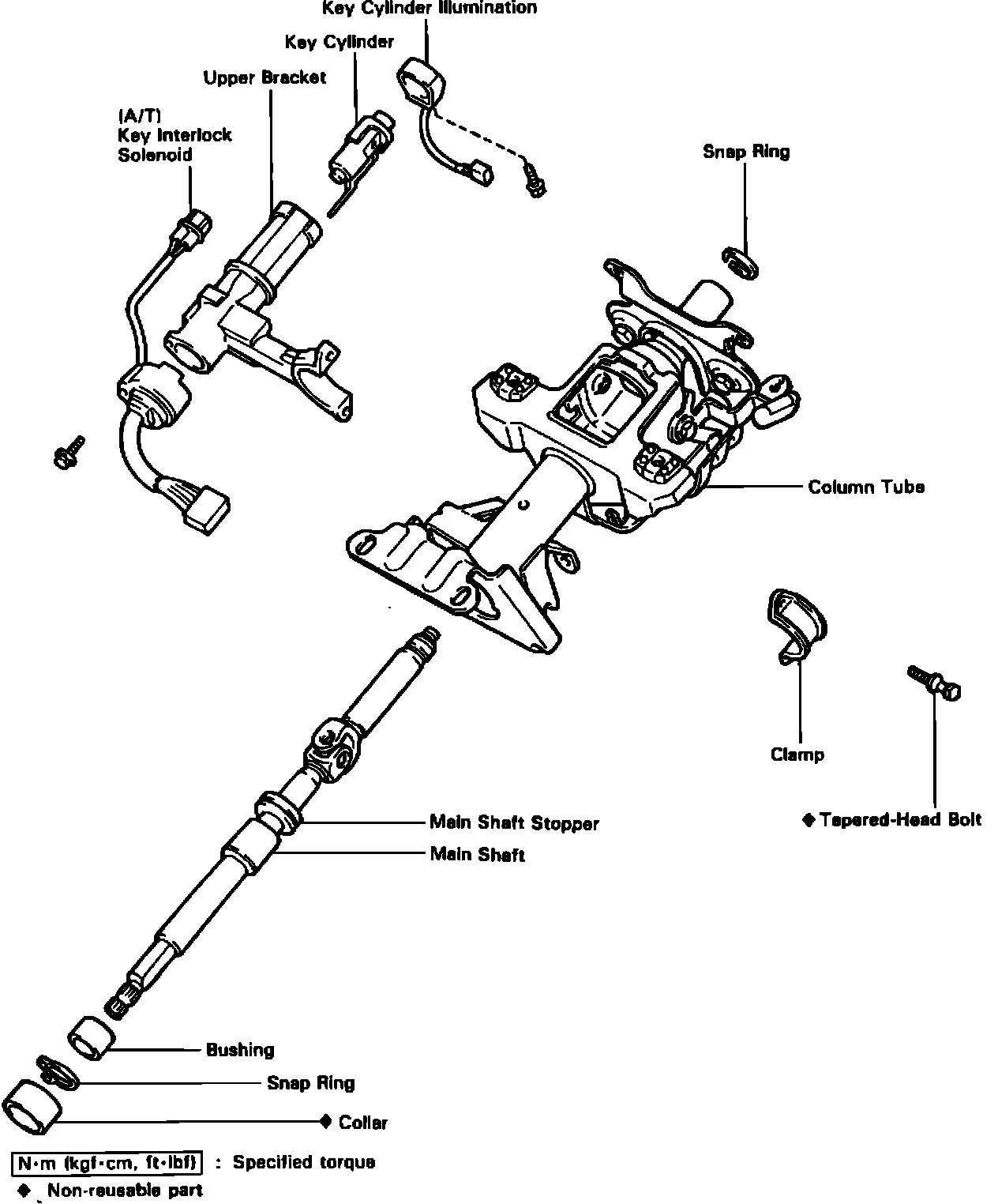 Check the upper bearing condition by manually turning the load bearing surface inside the column tube. If there is resistance to turning, or an uneven force is required to turn the bearing surface, replace the column tube.