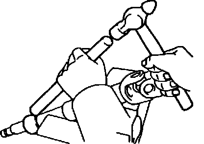 (g) Using a pin punch and hammer, stake the upper column tube.