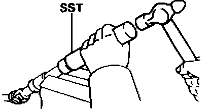 (d) Using a plastic hammer, tap the main shaft until the main shaft stopper contacts the collar.